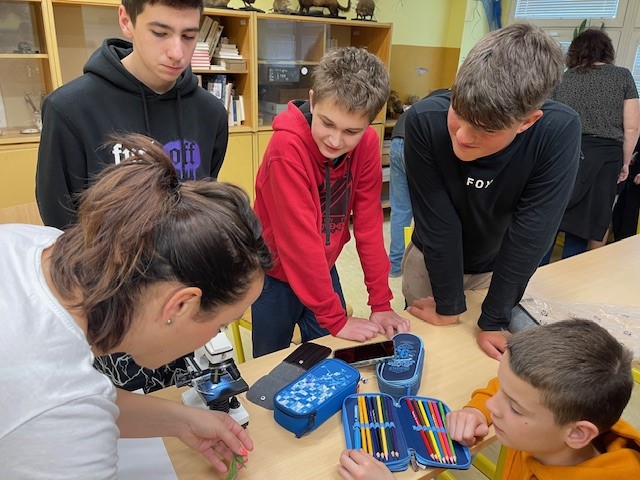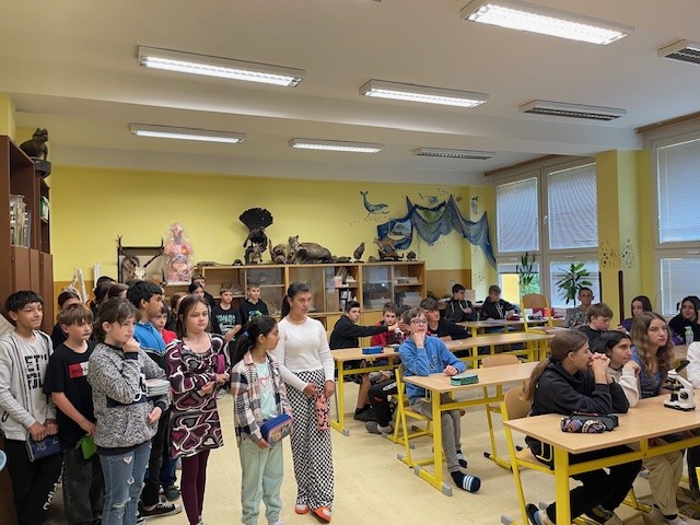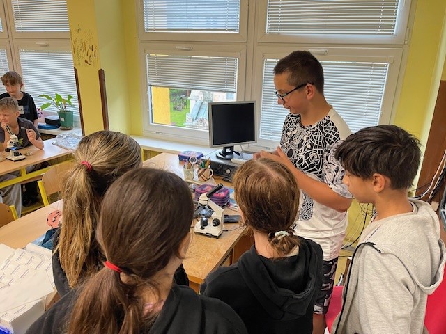 Moc si vážíme pozvání 7.B. a jeich třídní učitelky Ing. Adrieny Gosslové, abychom si společně s těmito žáky ve skupinách vytvořili náš ůplně první a opravdový laboratorní protokol a společně si zkusili mikroskopování. Spolupráce se nám líbila a navíc jsme se dozvěděli něco o složení mikroskopu. Moc děkujeme.
