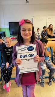 Z naší třídy se velmi dobře prezentovala na této velmi obsazené školní akci Klárka Kmeťová a získala Čestné uznání v kategorii A1. Naše třída tedy už svoji SUPERSTAR našla.