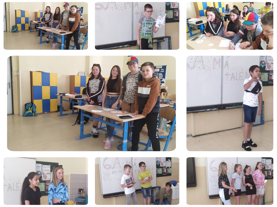 Poslední 2 hodiny hudební výchovy jsme se rozhodli, že uspořádáme soutěž - 6.A má talent. Do prvního kola se přihlásilo 6 skupinek nadějných umělců. Do finále, které se konalo o týden později, postoupili: Martin Bodnarik - zpěv s loutkami, Petr Balog - beatbox, Laura Habalová + Eva Ferencová - vlastní píseň, Petr Fajt, Eliáš Zahradník, Tobi Langhammer - Líní psi (rep). Aby bylo finále, jak má být, pozvali jsme si i publikum ze 3.A. Soutěžící předvedli neuvěřitelné výkony. Porota se potřebovala poradit o vítězi, a tak jsme si dali se třeťáky pořádnou diskárnu a parádně si zatančili. Nakonec si zlatou hvězdu odnesly Laura s Evičkou za svou vlastní píseň s ukulele. Velkým překvapením celé soutěže se stala Růženka ze 3.A, která nám na závěr nádherně zazpívala a všechny oslnila svým krásným, čistým hlasem, ale také odvahou před všemi vystoupit.