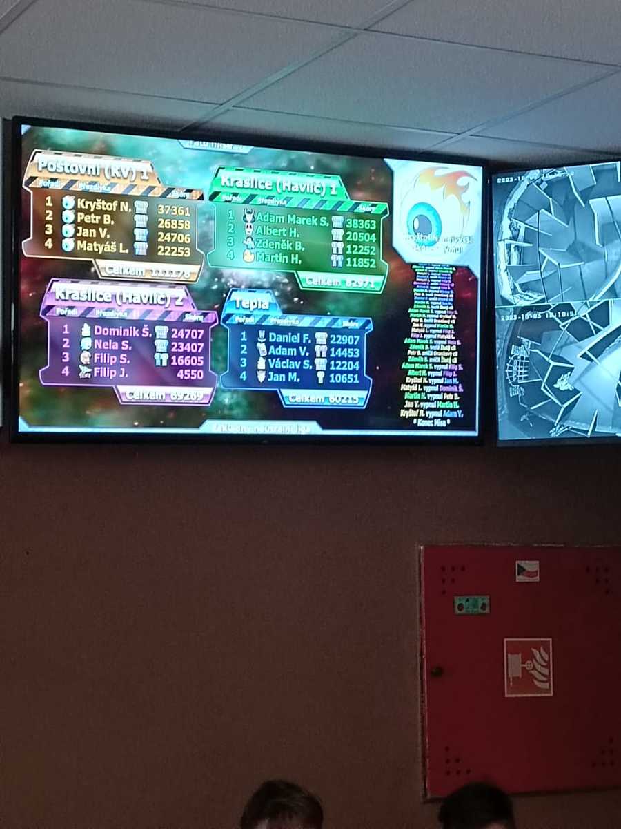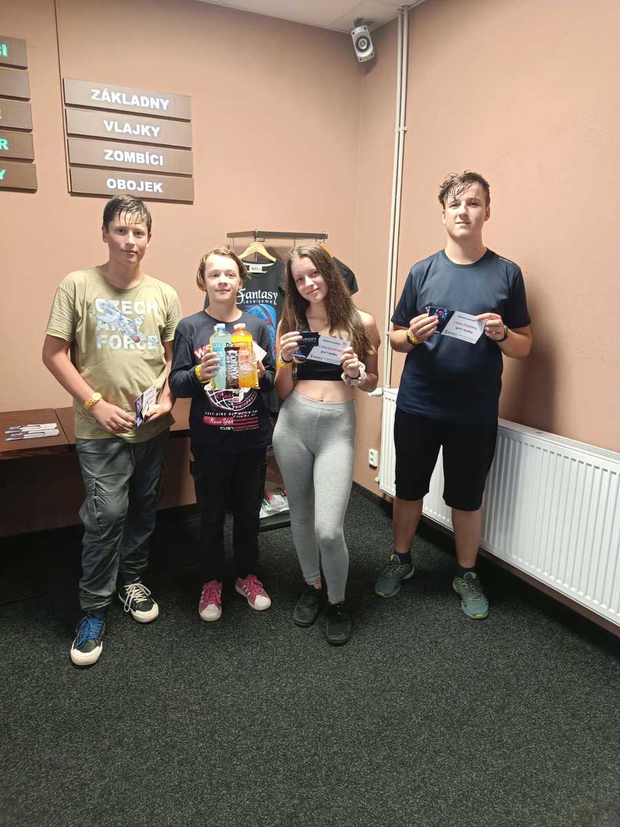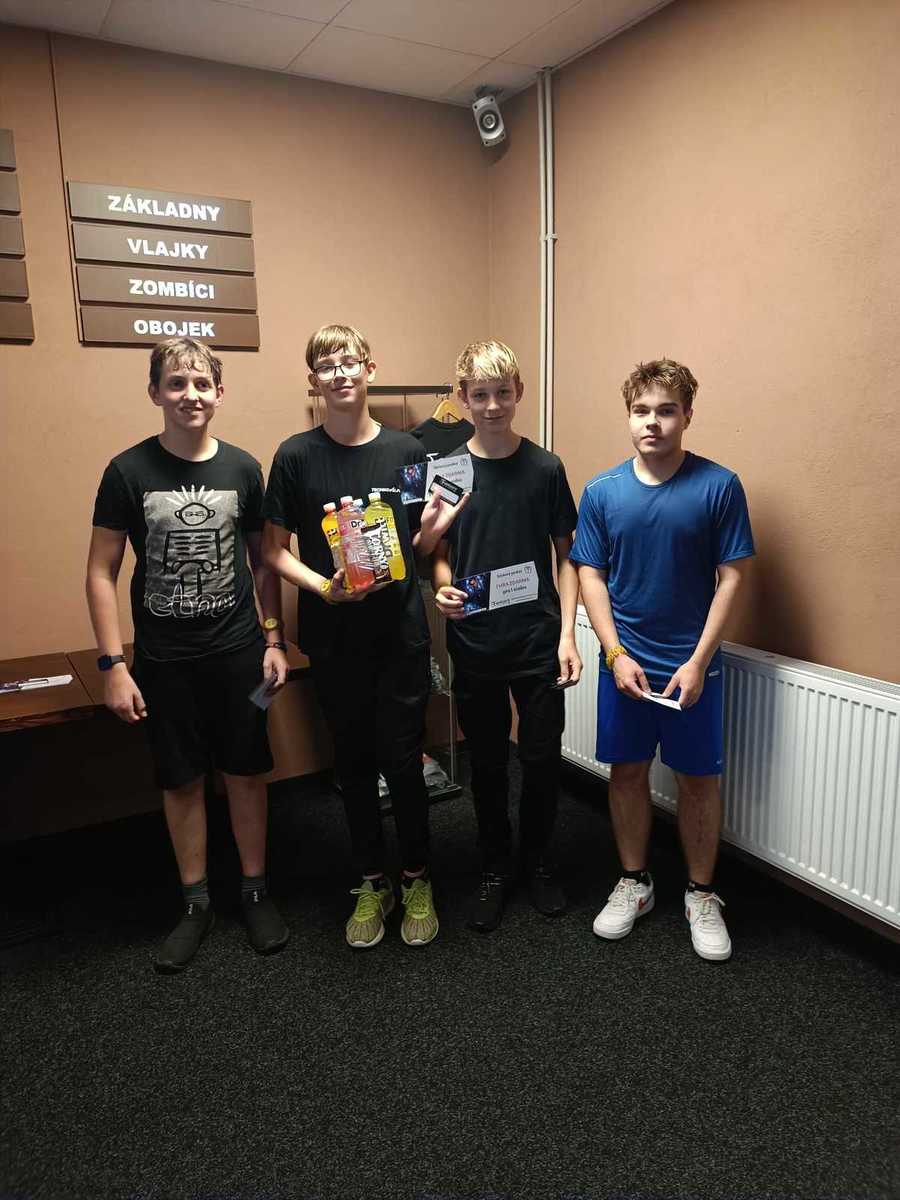 Seskupili jsem dva týmy a 3. 10. vyrazili vyhrávat na Laser Game do Karlových Varů. Jeden tým, čistě chlapecký, ve složení Adam Salva, Albert Hlavsa, Zdeněk Bíba a Martin Hudeček, druhý, smíšený, ve složení Nela Slobodová, Dominik Škába, Filip Jaworek a Filip Schöner, jely hájit čest školy.