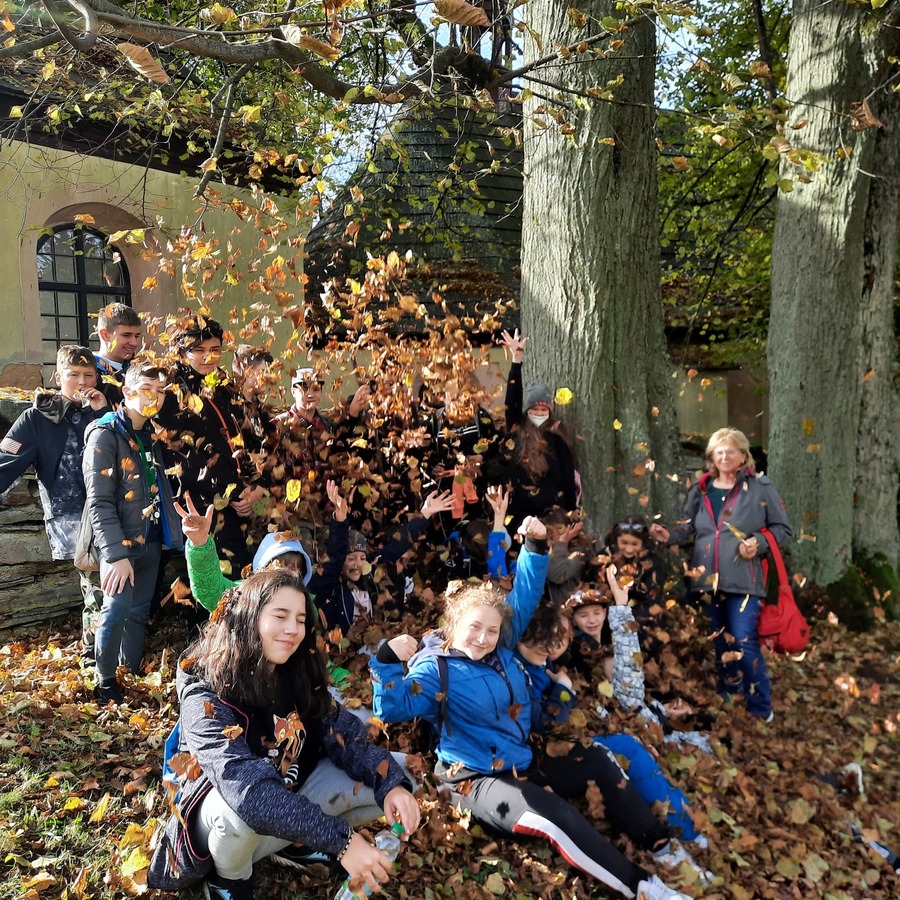 Ve středu 20. 10. jsme vyrazili v rámci Dne stromů ke Sněženským lípám a protože nám sluníčko přálo, tak jsme si užili krásný výlet. Po cestě jsme hádali stromové hádanky a stavěli základy středověké zdi. Holky si vedly o něco lépe a ve středověku by se neztratily. Kluci zvolili jinou taktiku, ale i oni to zvládli. Na Sněžné jsme změřili objem kmenů a tím splnili zadané úkoly. Po cestě dolů pak dokonce i odvážní jedinci váleli po louce směrem ke hřbitovu sudy.