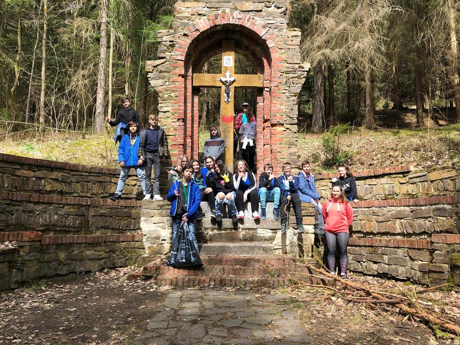 31. března jsme se podívali do kraslické čističky v rámci výuky chemie. Je dobré vědět, kam odchází náš odpad, ti s citlivějším nosem se však ošklíbali. Cestou zpátky jsme chtěli v rámci akce Ukliďme Česko sbírat odpadky, ovšem počasí s námi nesouhlasilo a déšť nás vrátil do školy. Tak alespoň foto na vzpomínku...