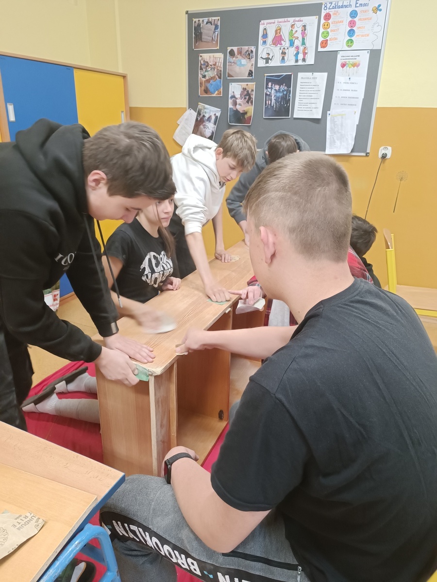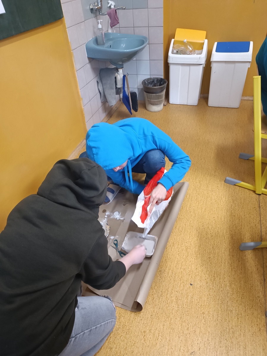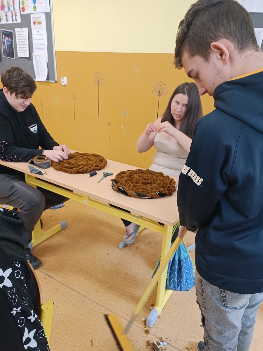 Tento pátek 28. 4. jsme se stali pracovníky, kteří svou výrobu zvládnou ekologicky. Rozdělili jsme se do skupin podle naturelu, tzn. část se chtěla věnovat renovaci nábytku, část vyráběla sádrové masky pomocí alobalu. Ti s maskami se zvládli podílet i na výrobě podsedáků ze starých triček. Protože jsme šikovní, podařilo se téměř vše. Pochvalu si zaslouží určitě všichni.
