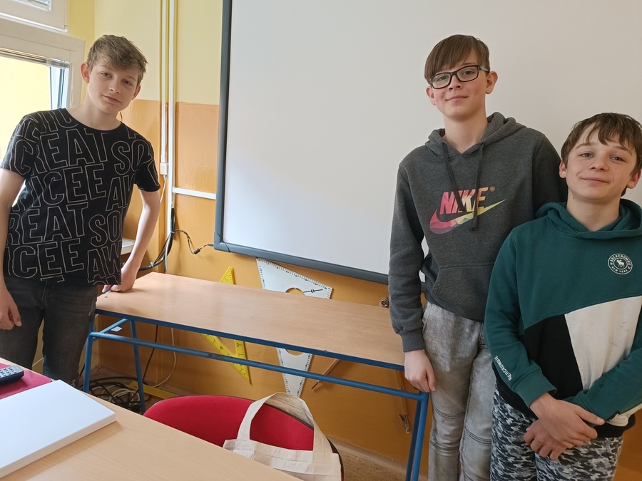 Naši skvělí žáci Adam Salva jako kapitán, Zdeněk Bíba, Albert Hlavsa a Martin Hudeček doplněni o Báru Patakiovou ze 7. A se nejen zúčastnili, ale dokonce i vyhráli 12. 10. školní kolo Piškvorek. A nejen oni, ale ještě další dva - Matěj Olah a Petr Banýr - skvěle reprezentovali třídu, protože se spolu se žáky ze střední školy umístili na třetím místě. Takže jen a jen chválíme a pyšníme se jejich výsledky !!!