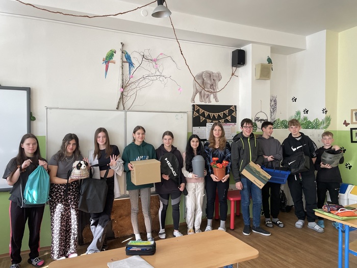 12. 4. 2024 jsme zažili trošku jiný den, třída 6.B nás všechny zapojila do celosvětového happeningu "No backpack". Tento den má upozornit na miliony dětí po celém světě, které musí chodit kilometry pěšky do školy a pomůcky nosí v improvizovaných zavazadlech, protože běžné aktovky si nemohou dovolit. Takže úkol zněl jasně...přinést v tento den pomůcky do školy v čemkoli, jen ne v aktovce či batohu. Zapojili se téměř všichni a někdy byly nápady velice originální. Děkujeme za připojení do této akce!