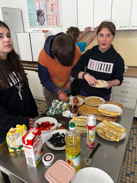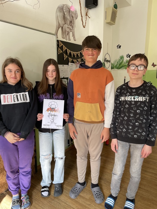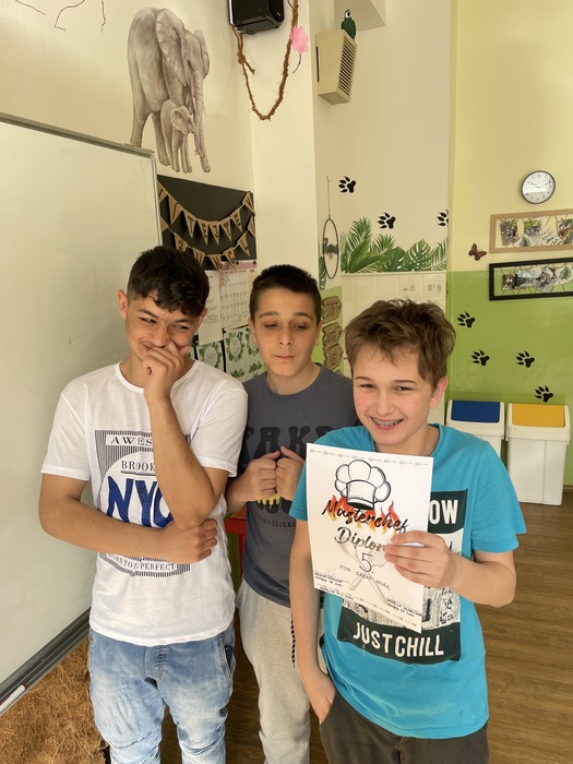 V rámci tandemových hodin v angličtině se vždy zaměříme na nějaké téma. Tentokrát to bylo jídlo. Naučili jsme se novou slovní zásobu, konverzovali a koukali na videa. Pak už to byla týmová práce. Ve skupinách jsme vymýšleli recepty včetně technologických postupů, utvořili obrázkový recept a abychom dokázali, že je recept realizovatelný, zakončili jsme toto téma soutěží Masterchef! Byla to přehlídka skvělých jídel a chutě naprosto vynikající. Porota hodnotila provedení receptu, náročnost, zdobení na talíři a samozřejmě chuť. Bylo těžké rozhodnout, pochvalu zaslouží všichni! Jednotlivé umístění je jasné z fotogalerie...