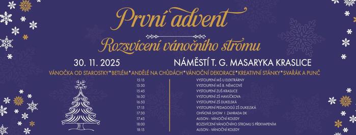 V neděli 30.11. nejprve odvážně a krásně zazpíval ,,Vánoce na míru" Kubík. Následovalo recitační okénko - básničku od Jiřího Žáčka přednesly Deniska s Diankou. Vlastní básničku ,,Vánoce jsou tu" představily Jenny a Anička. Celá třída 5. B pak společně zarecitovala ,,Vánoční čas". Závěr patřil tanečnímu vystoupení, ve kterém se blýskly dívky od 5. do 9. ročníku, přičemž celou choreografii vytvořila jedna z nich - Anička W. Všem vystupujícím moc děkujeme za odvahu postavit se před zaplněné náměstí a za skvělá vystoupení, která nás naladila na kouzelnou atmosféru blížících se Vánoc. Za čepičky moc děkujeme Krámek u Nicol Kraslice a za bílé svetry Regině Rokové.