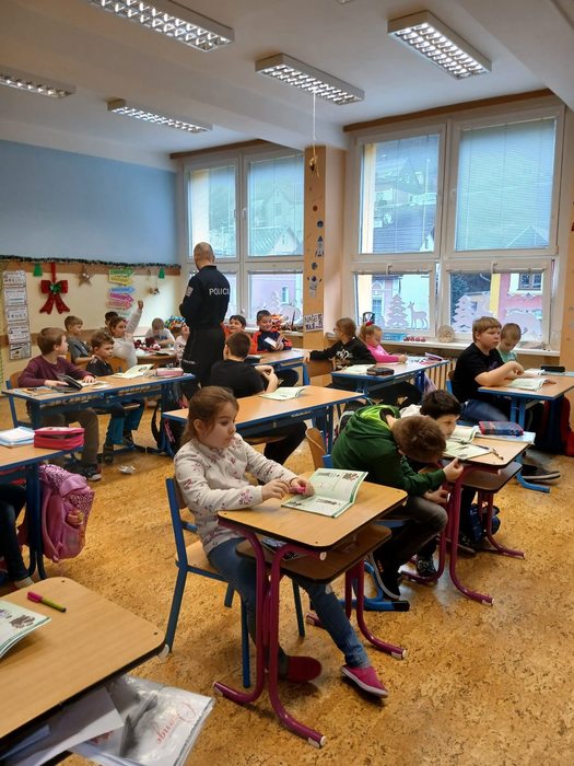 Ve třetích třídách děti absolvovaly besedu s PČR zaměřenou na bezpečnost v dopravě. Nyní je čeká práce s Ajaxovo zápisníkem. Součástí besedy byl i blok zaměřený na právní důsledky chování jednotlivců. Děkujeme panu Holkovi.