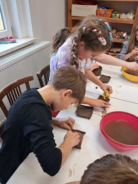 4.B navštívila opět keramickou dílnu, aby naglazovala své výrobky. Nebylo to jednoduché. Děti přišly na to, že každý výrobek potřebuje vynaložit hodně úsilí na to, aby byl opravdu krásný a povedený. Se vším jim poradila a pomohla paní Radka z DDM. Moc jí za to děkujeme.
