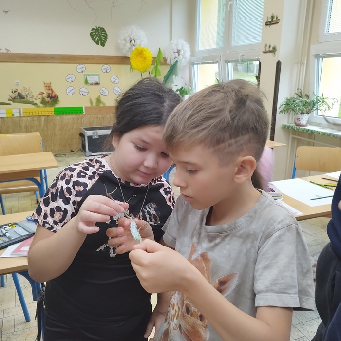 Druháčci a čtvrťáčci dnes zjišťovali informace o životě nočního motýla martináče pajasanového. Naše housenky už jsou pěkně vypasené a všichni se těšíme na jejich další proměnu.