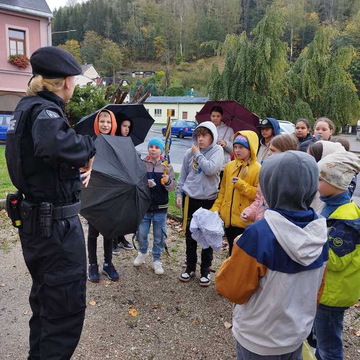 Super čas strávený s Městskou policií Kraslice. Páťáci se v rámci CJS vypravili zjistit, jakou práci vykonávají naši městští strážníci. Ujali se nás skvělí Bc. Věra Dörflerová, Ing. Miroslav Dörfler a Pavel Mariňák. Děti dostaly píšťalky a upozorňovaly na problematické situace ve městě. Nechyběly ani ukázky přestupků jako parkování na invalidech, kouření a vandalismus na autobusovém nádraží. Figuranti byli z řad asistentů prevence kriminality Lucie Banýrová a František Olah. Navštívili jsme služebnu, zkontrolovali kamerový systém a nový radar pro ruční měření, prohlédli si služební auto, městské kotce a obdivovali práci policejní psovodky. Někteří se také podrobili dechové zkoušce a zatčení. Naštěstí jen jako