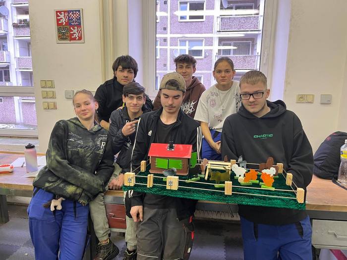 Žáci strojních oborů při odborném výcviku se zaměřením na ruční zpracování kovů zhotovili model farmy s hospodářským zvířectvem. Výrobek bude představen na Jarní výstavě v domě kultury a poté bude poskytnut k využití dětem prvního stupně a mateřské školy.