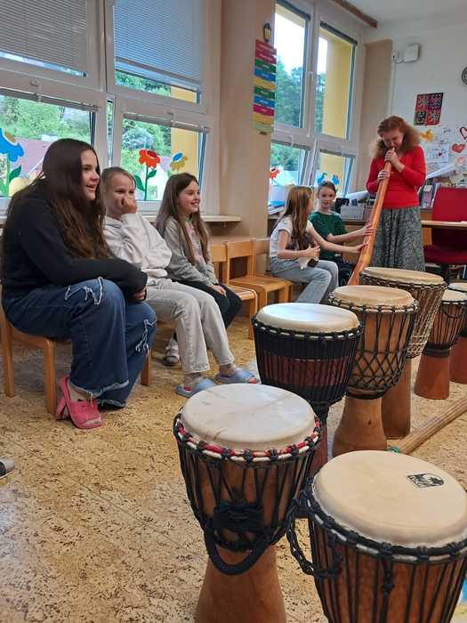 27.5. si děti ze 4.B užily muzikoterapii. Poznaly hudební nástroje všech kontinentů a zabubnovaly si na africké bubny. Zážitek opravdu veliký pro všechny.