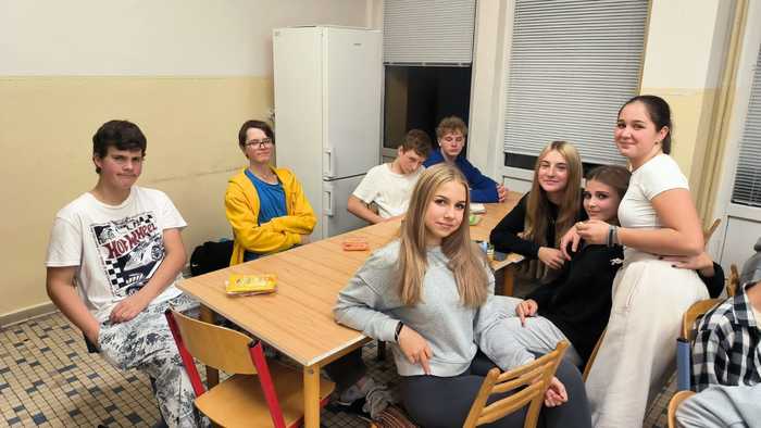 Halloweenskou párty zakončili žáci 9.A přespávačkou ve škole. Absolvovali workshop na výrobu pizzy, a k večeři si tak pochutnali na vlastnoručně vyrobené pizze, kterou si každý udělal podle svého. Ubytovali se už tradičně v naší tělocvičně, večer si užili ,,kino". Noc jim narušila výprava do školního sklepa, kde j svým podpisem stvrdili, že tam opravdu byli.