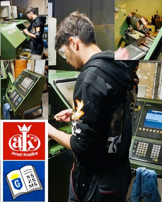 Také v tomto školním roce se podařilo umístit několik učňů strojních oborů na externí praxi ve firmě AMATI Kraslice, výrobní družstvo. V průběhu listopadu bylo přímo ve výrobním provozu ze strany školy ověřeno, že naši žáci se již v odpovídajícím rozsahu podílí na rozmanitém výrobním procesu. Na snímku je zachycen třeťák Filip při práci na moderním CNC obráběcím stroji. Přejeme žákům mnoho studijních a pracovních úspěchů. Smluvnímu partnerovi děkujeme za vstřícný a motivační přístup.