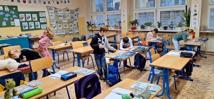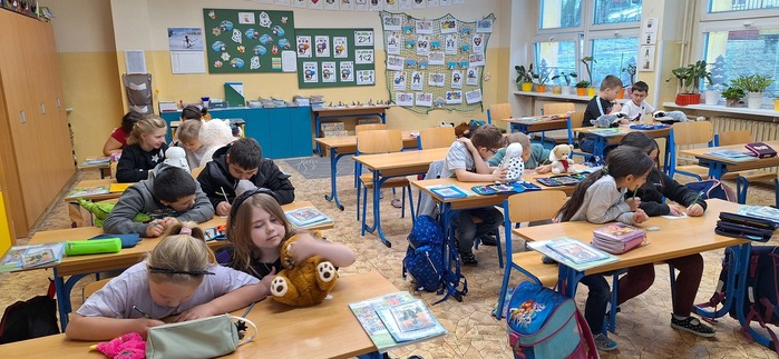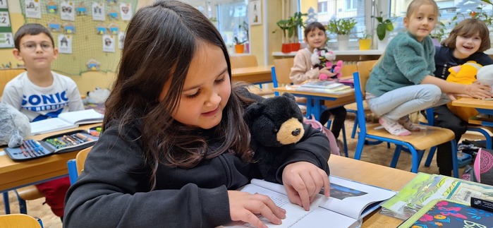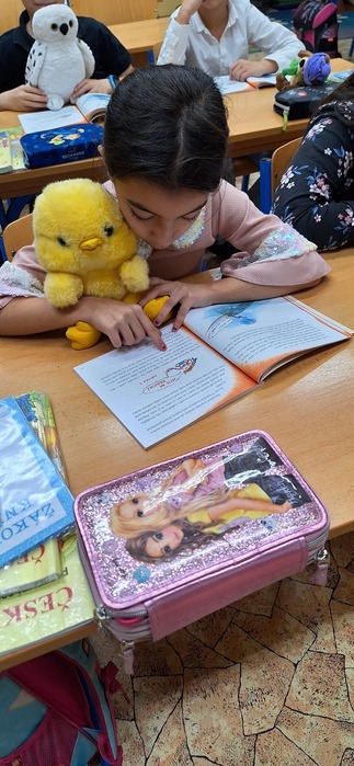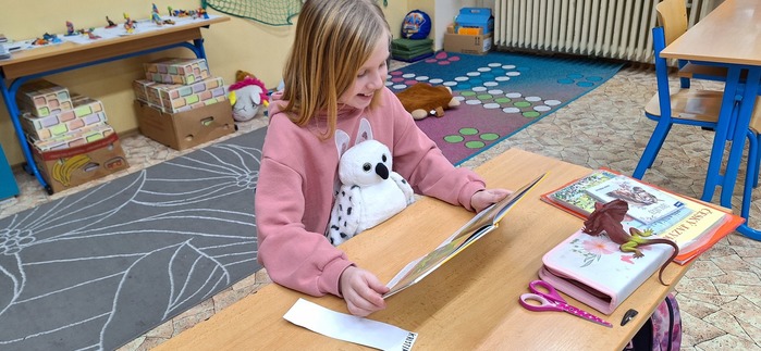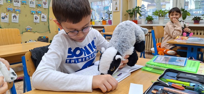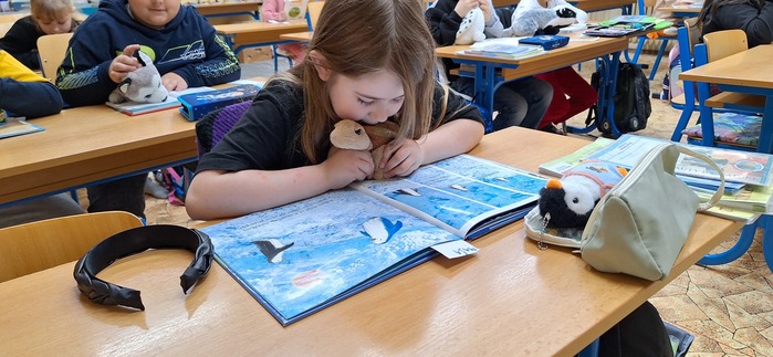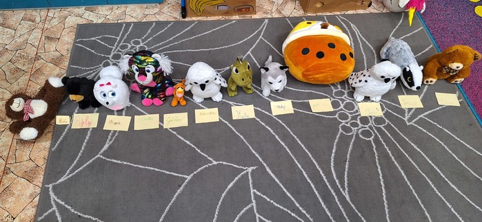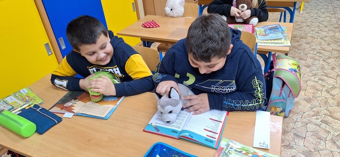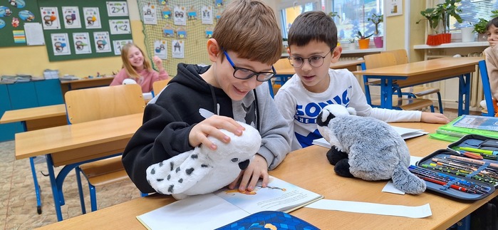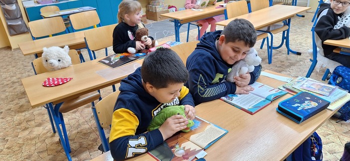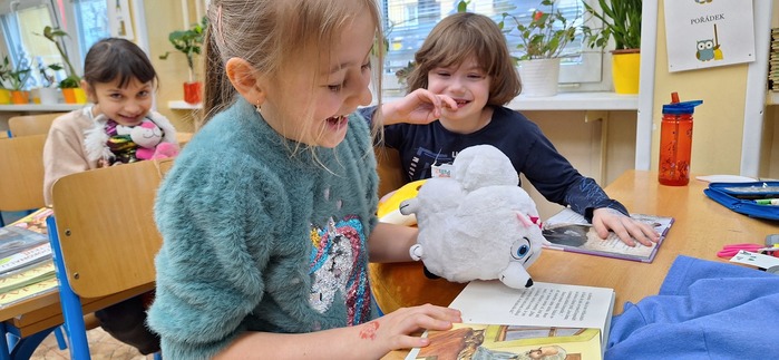 Pozvali jsme do školy naše oblíbené plyšové kamarády. Pojmenovali jsme je a pak seřadili podle abecedy, roztřídili je a spočítali, vymysleli jsme s nimi slovní úlohu, pak jsme je nakreslili a závodili s nimi v tělocvičně. Také jsme je vzali na procházku kolem školy. Nejvíc jsme se nasmáli, když jsme hlasem našeho plyšáka četli. Vyvrcholením bylo, že s námi mohli být u slavnostního předávání našeho pololetního vysvědčení. Byla to velká zábava a určitě se jim u nás ve škole líbilo, takže je určitě zase někdy pozveme.