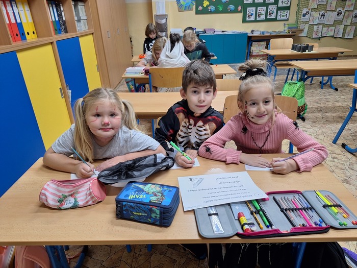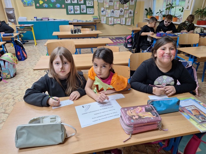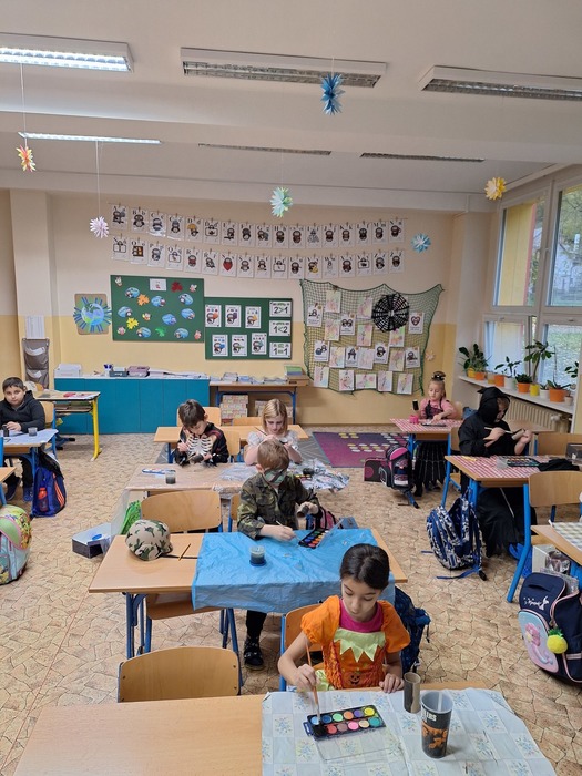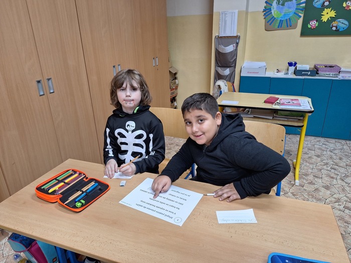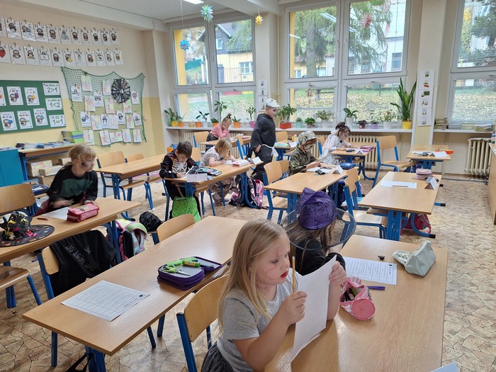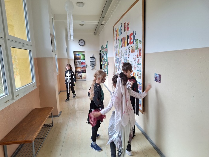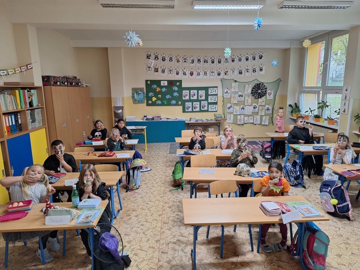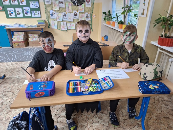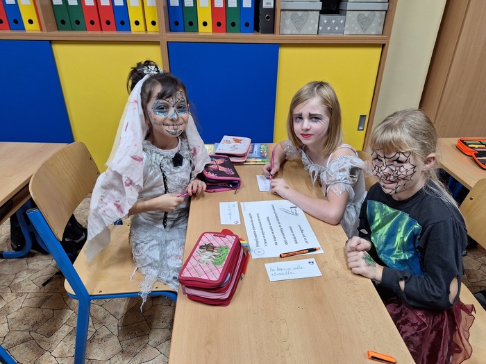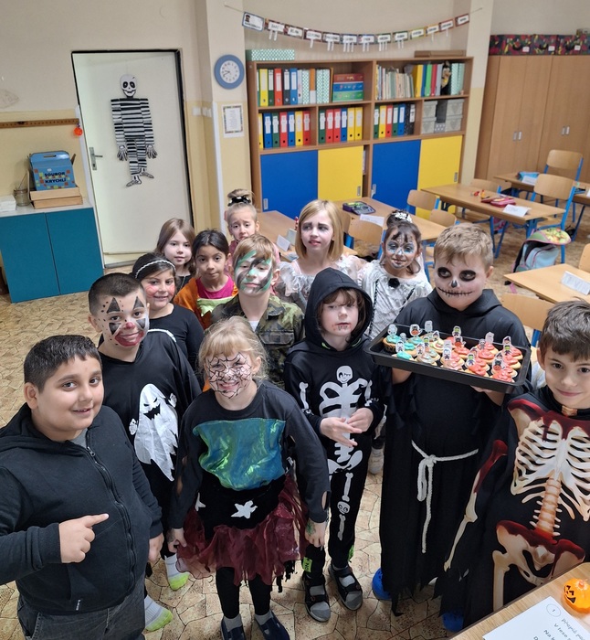 Dnešní paní učitelka i žáci byli strašidelní, díky jedné mamince jsme měli i strašlivě dobrou svačinku a také jsme se strašidlácky učili, ale nikdo se nakonec vlastně nebál a všichni jsme si tu legraci moc užili :-)