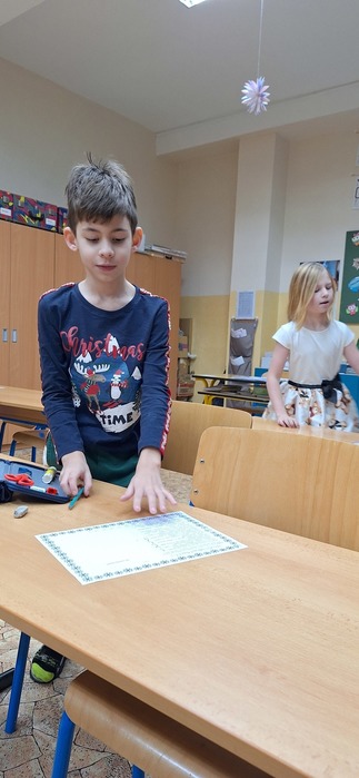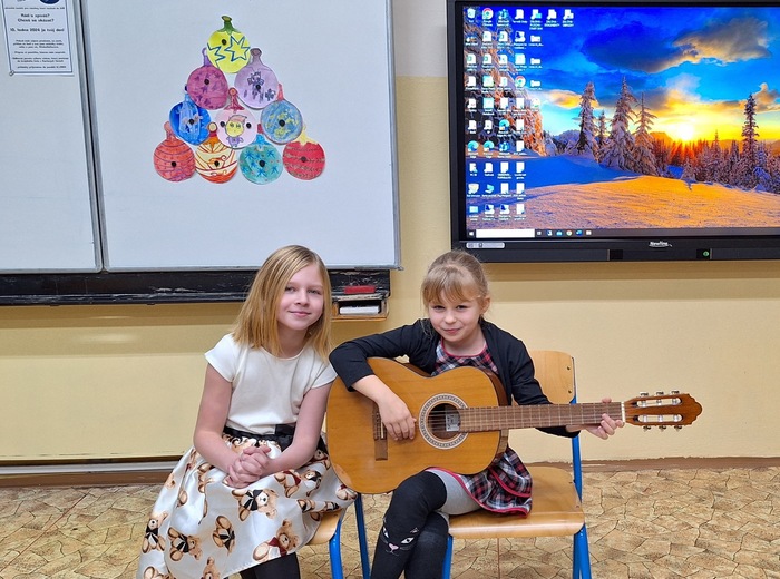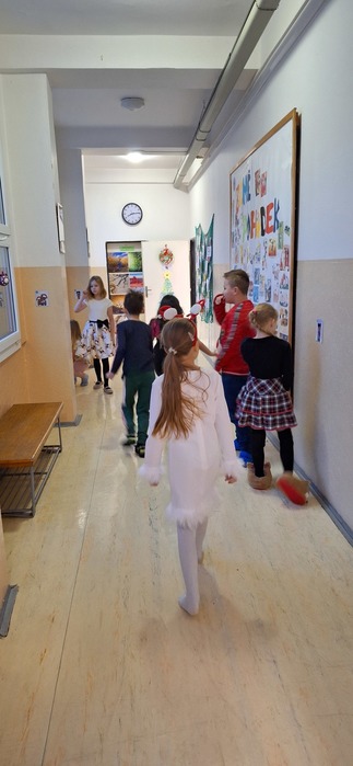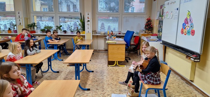Čekání na Ježíška jsme si ve škole zkrátili vybarvováním adventního kalendáře, zpěvem, vánočním učením, mlsáním cukroví a dokonce nám i kamarádům z 2. B spolužačka Michalka zahrála na kytaru a s Týnkou i zazpívaly. Nakonec došlo i na dáreček a sladkost od paní učitelky a paní asistentky. A teď už hurá na vánoční prázdniny!