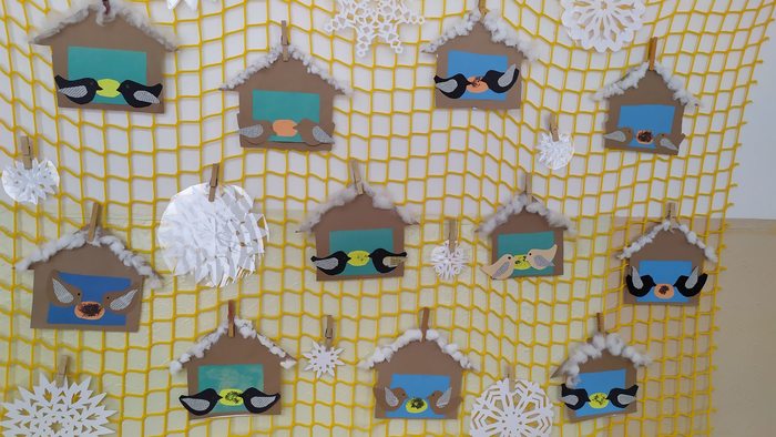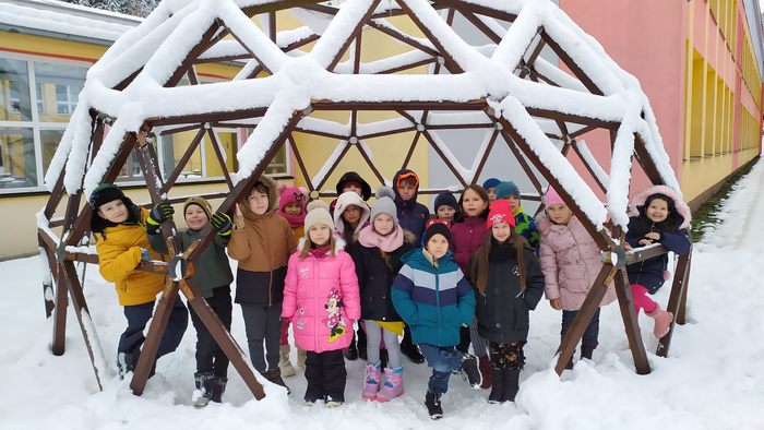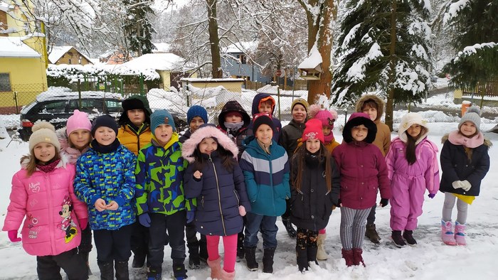 Při hodině EPV jsme vyrobili krásná krmítka z papíru, tak jsme se vypravili při prvouce sledovat proměny přírody v zimě a nasypat ptáčkům do krmítka u naší školy.