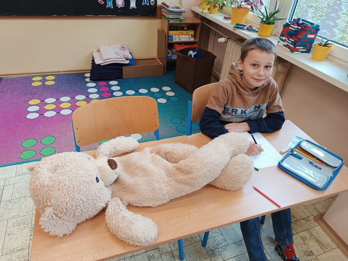 Své plyšáky si děti užily v týdnu s pololetním vysvědčením. Jejich plyšový mazlíčci s dětmi kreslili, cvičili, četli, psali i počítali. Nesměli chybět ani při vycházce na prvouce.