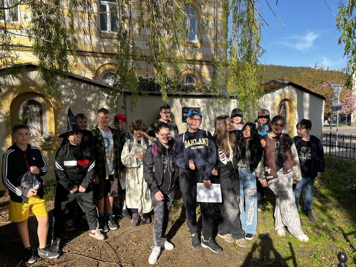 Den před volnem měla naše škola projektový den - "Příroda kolem nás". Všichni z druhého stupně měli své cesty a úkoly. Naší první zastávkou byly Císařské duby u kostela, kde děti měli změřit obvod kmene ve výšce jednoho metru a doplnit údaje o památných stromech. Dále jsme pokračovali do městských sadů, kde jsme začali s další aktivitou - poznávačkou skládající se z 25 obrázků. Tu jsme plnili průběžně celou cestu. Naše cesta se dále ubírala loupežnickou stezkou kolem domácího vrchu. V polovině cesty jsme si udělali "land art" a zkusili jsme si poskládat jakýkoliv obrázek pomocí přírodnin. Počasí nám přálo a den jsme si jako třída užili.